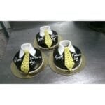 Three assorted chocolate truffles and a “Happy Father’s Day” salutation adorn the ganache filled top.