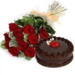 Flowers Cake Online Delivery Dhanbad, Bunch of 10 Red Roses in a cellophane packing with 500 gm Chocolate truffle Cake.
