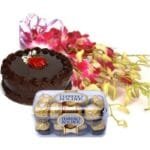 Online Cake Dhanbad Best Shop, Bunch of 6 Orchids , 1/2 Kg Chocolate Cake & 16 Pcs Ferrero Rocher Box.