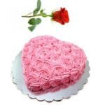 Pink Flower Heart Cake 1Kg with a Rose
